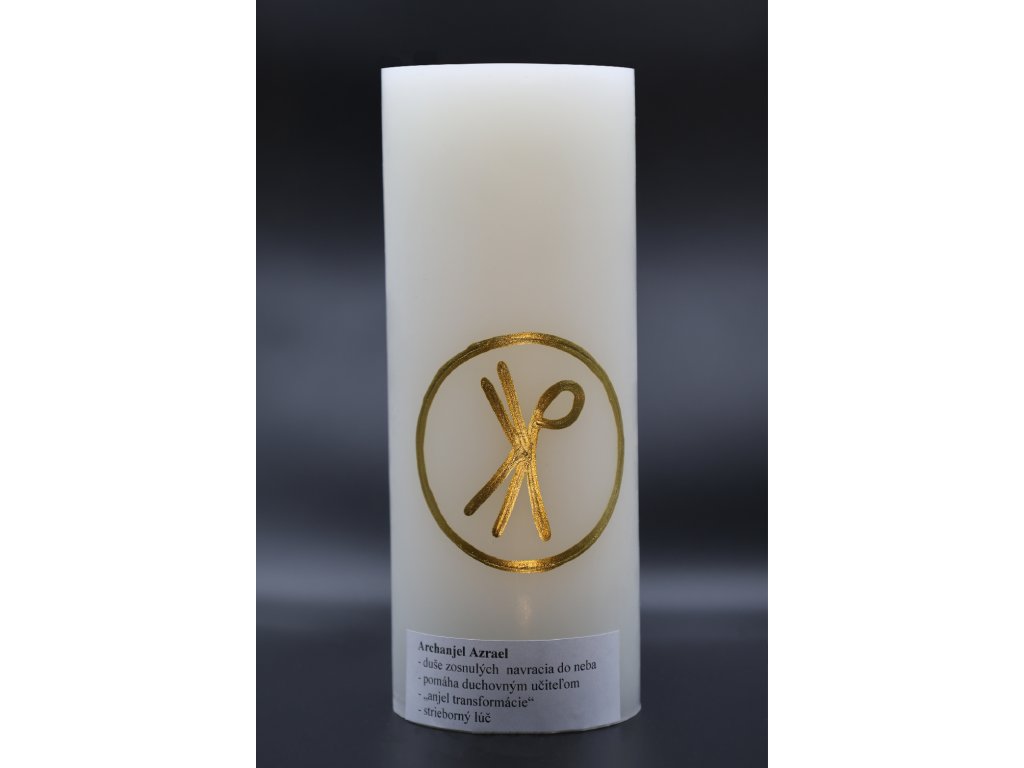 Táto sviečka je venovaná archanjelovi Azraelovi, ktorý je známy ako sprievodca duší a anjel hlbokej duchovnej premeny. Jeho energia prináša pokoj, útechu a pochopenie v momentoch zmien, straty či vnútorného hľadania. Pri zapálení sviečky môže človek pocítiť jemnú podporu, uvoľnenie napätia a spojenie s tichou silou, ktorá pomáha prijať minulosť a otvoriť sa novým začiatkom. Sviečka vytvára priestor pre rozjímanie, duchovnú rovnováhu a vnútorný pokoj.